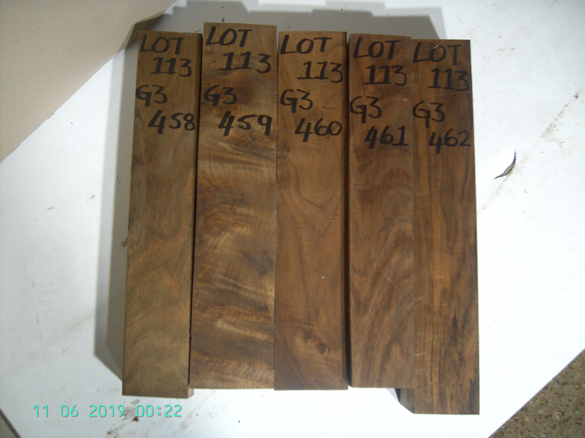 FIVE GRADE 3 FIGURED WALNUT BLANKS SUITABLE FOR FORE-ENDS