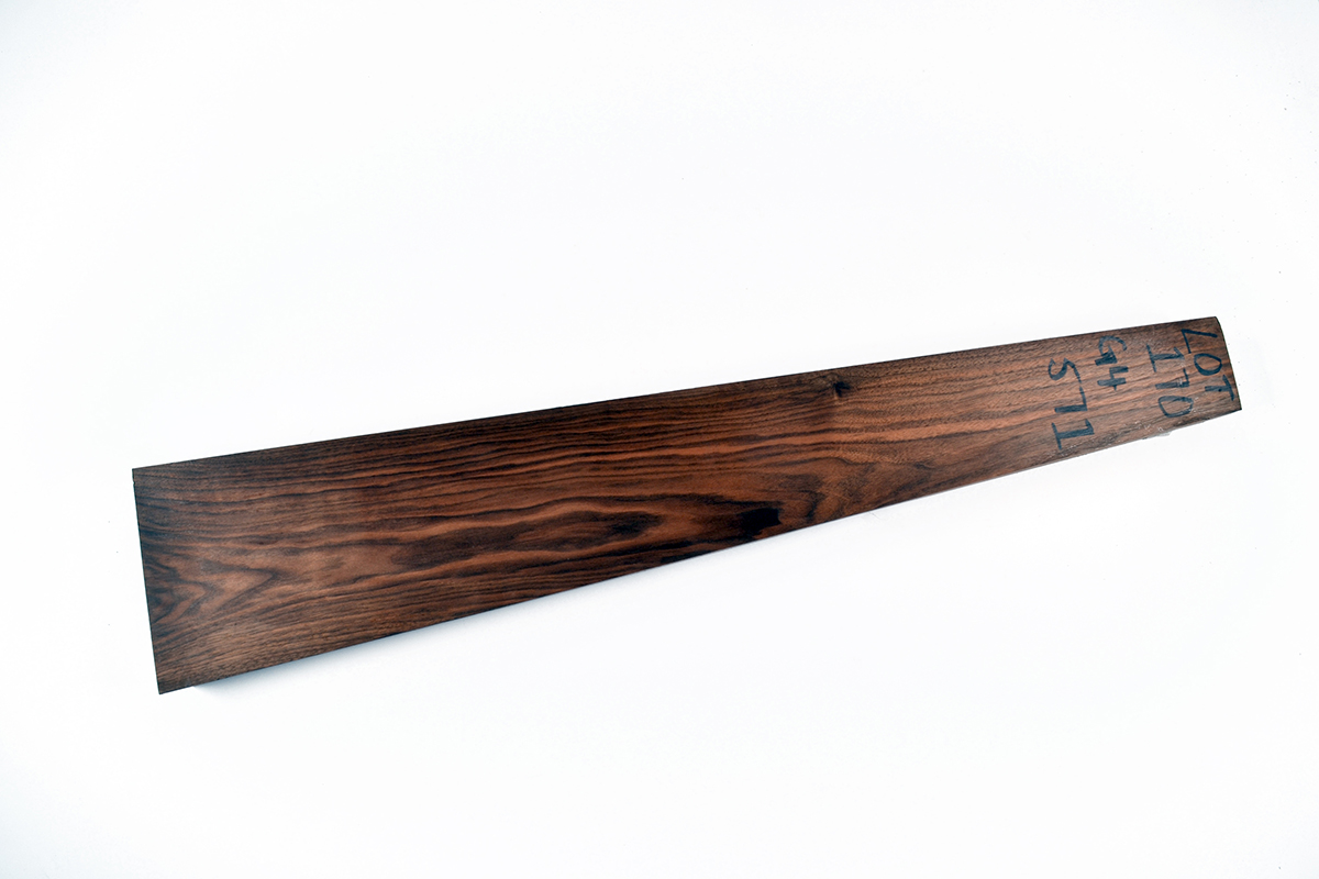 A 'GRADE 4' FIGURED WALNUT STOCK BLANK SUITABLE FOR A RIFLE,