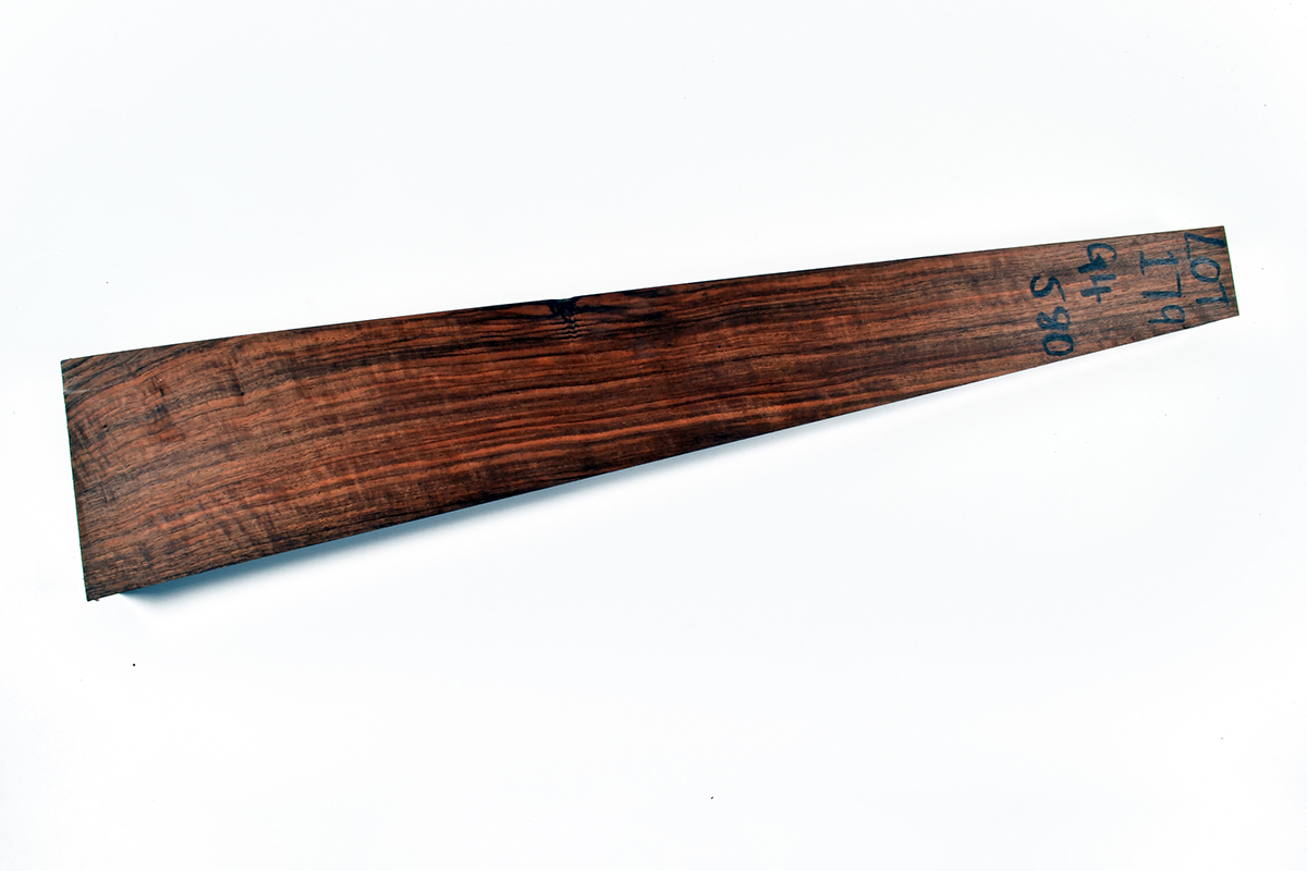 A 'GRADE 4' FIGURED WALNUT STOCK BLANK SUITABLE FOR A RIFLE,