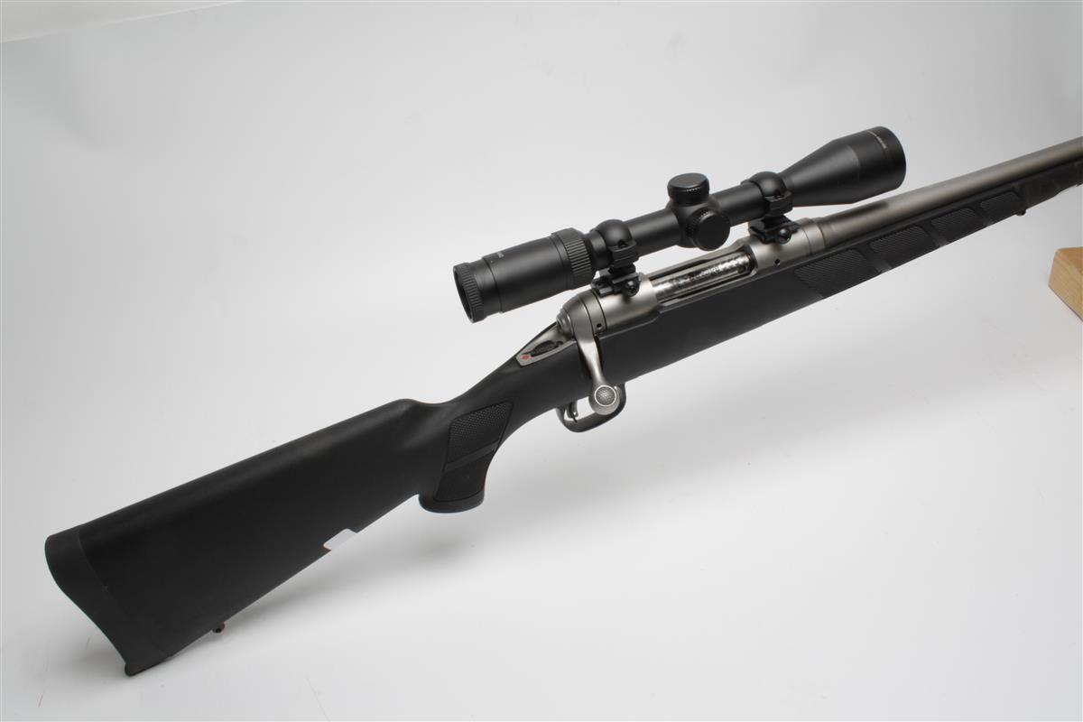 SAVAGE .243 WIN. 'MODEL 16' BOLT-MAGAZINE SPORTING RIFLE, serial no. J237419, 22in. unsighted nitro barrel, threaded for sound moderator, 3-9x40 telescopic sight, manual safety, detachable magazine, 13 7/8in. synthetic pistolgrip stock (including recoil pad), pommel with Ruger trade mark, sling eyes