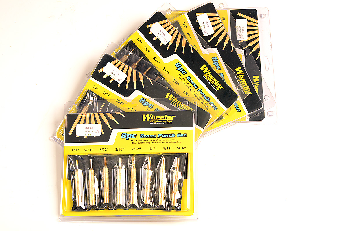 A COLLECTION OF FIVE SETS OF UNUSED WHEELER ENGINEERING '8PC BRASS PUNCH SET'