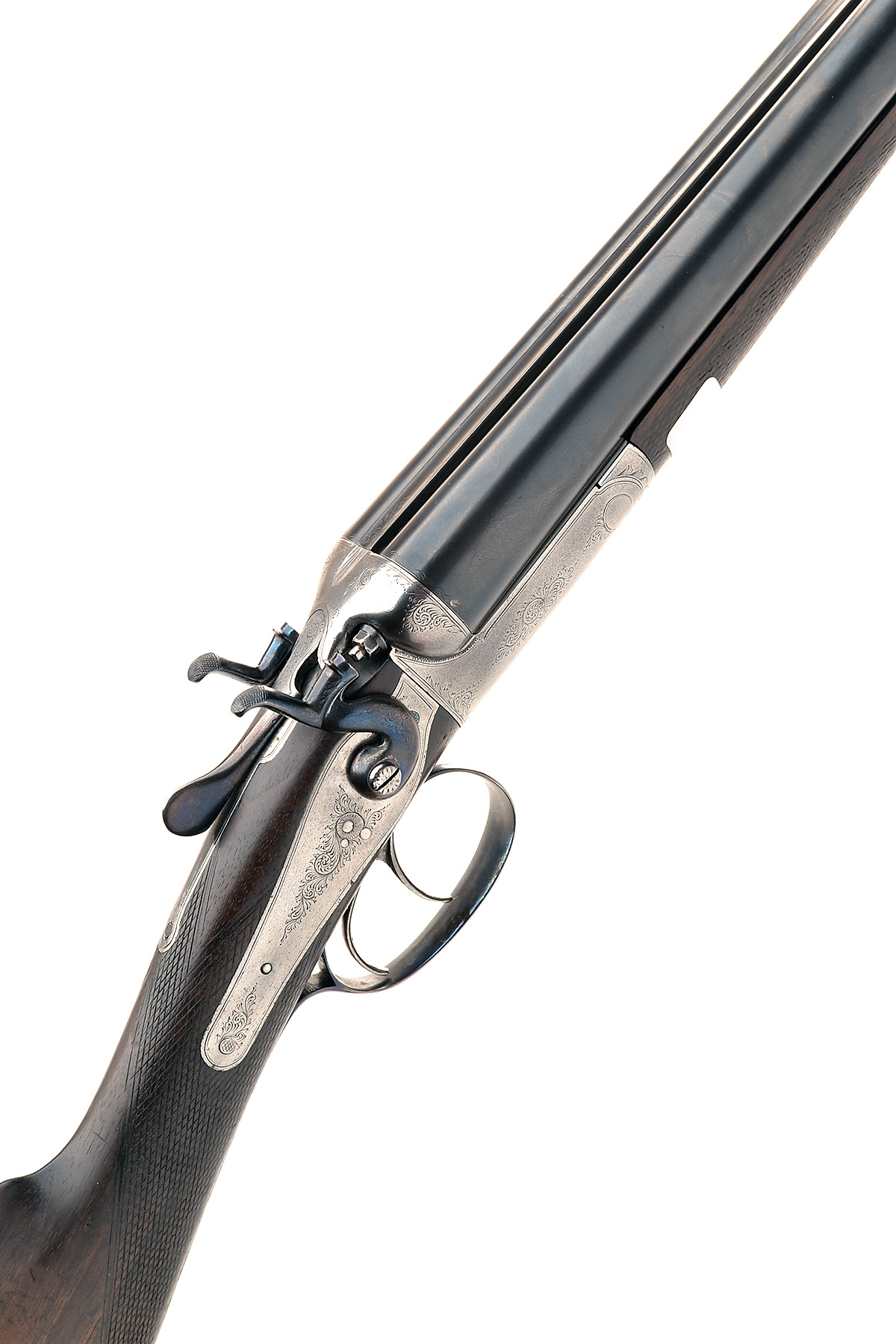DARLOW 12-BORE TOPLEVER HAMMERGUN, serial no. 5651, 28in. nitro barrels (pitted), 2 12in. chambers, bored approx. 1/2 and 3/4 choke, rebounding locks, border and partial scroll engraving, brushed finish, 14 3/8in. stock including buttplate, weight 6lb. 10oz.