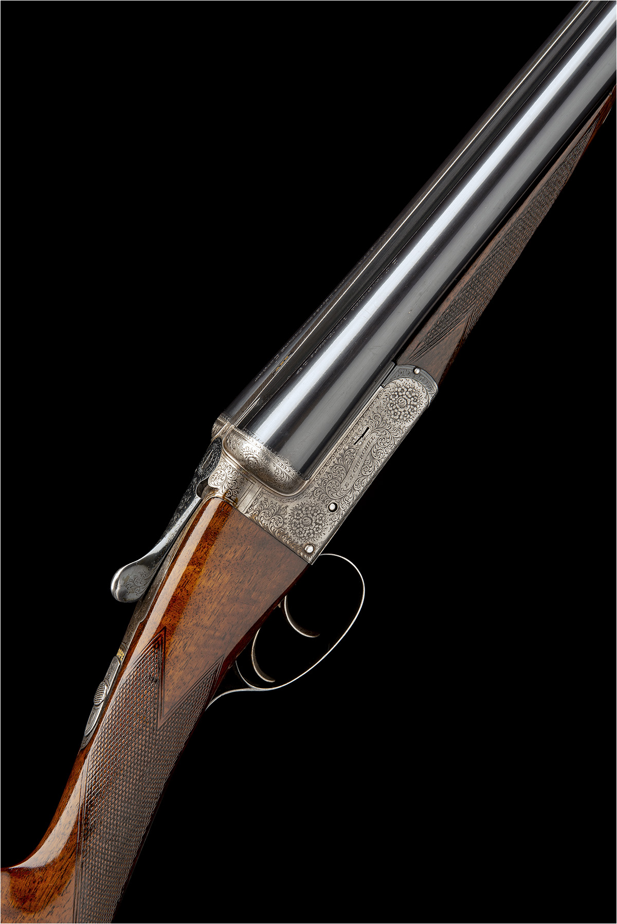 25in. nitro barrels with matt Churchill-rib gold-inlaid 'XXV' at the breech end, the tubes engraved 'E.J. CHURCHILL (GUNMAKERS) LTD. ORANGE ST. GUNWORKS. LEICESTER SQUARE. LONDON.', 2in. chambers, bored approx. 1/4 and 1/2 choke, slender fences, automatic safety with gold-inlaid 'SAFE' detail, Smith patent assisted opening system, fine acanthus scroll engraving with floral bouquets, the underside with a cartouche engraved 'REGAL MODEL' and gold-inlaid 'XXV', retaining traces of original colour-hardening, 14 1/2in. well-figured stock, weight 5lb. 4oz.
