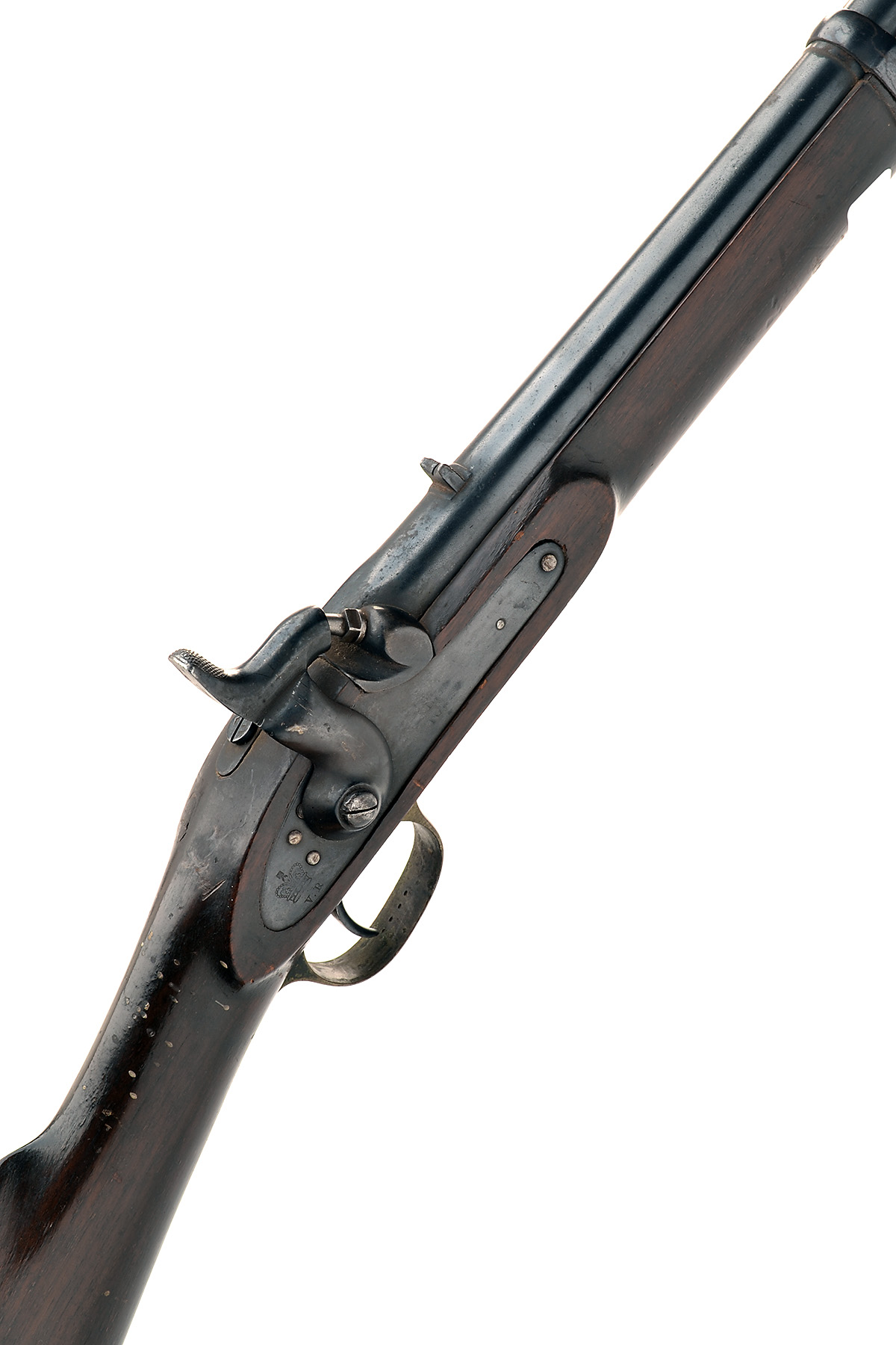 * A .650 PERCUSSION MUSKET SIGNED TOWER, MODEL 'INDIAN TWO-BAND', serial no. 943T, dated obscured, with re-blued 32in. sighted barrel, re-blued lock and varnished walnut full-stock with brass furniture and iron barrel-bands and ramrod