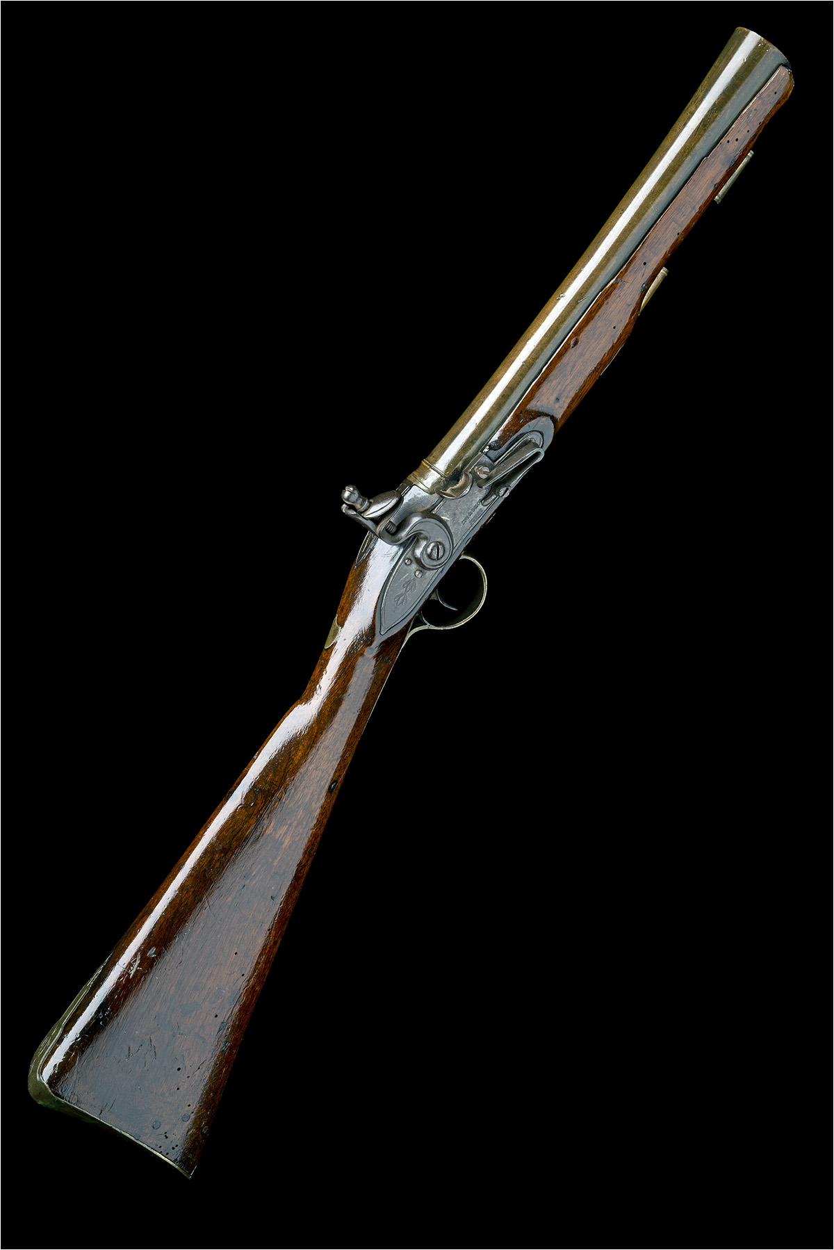 A 24-BORE FLINTLOCK BRASS-BARRELLED BLUNDERBUSS, no visible serial number,