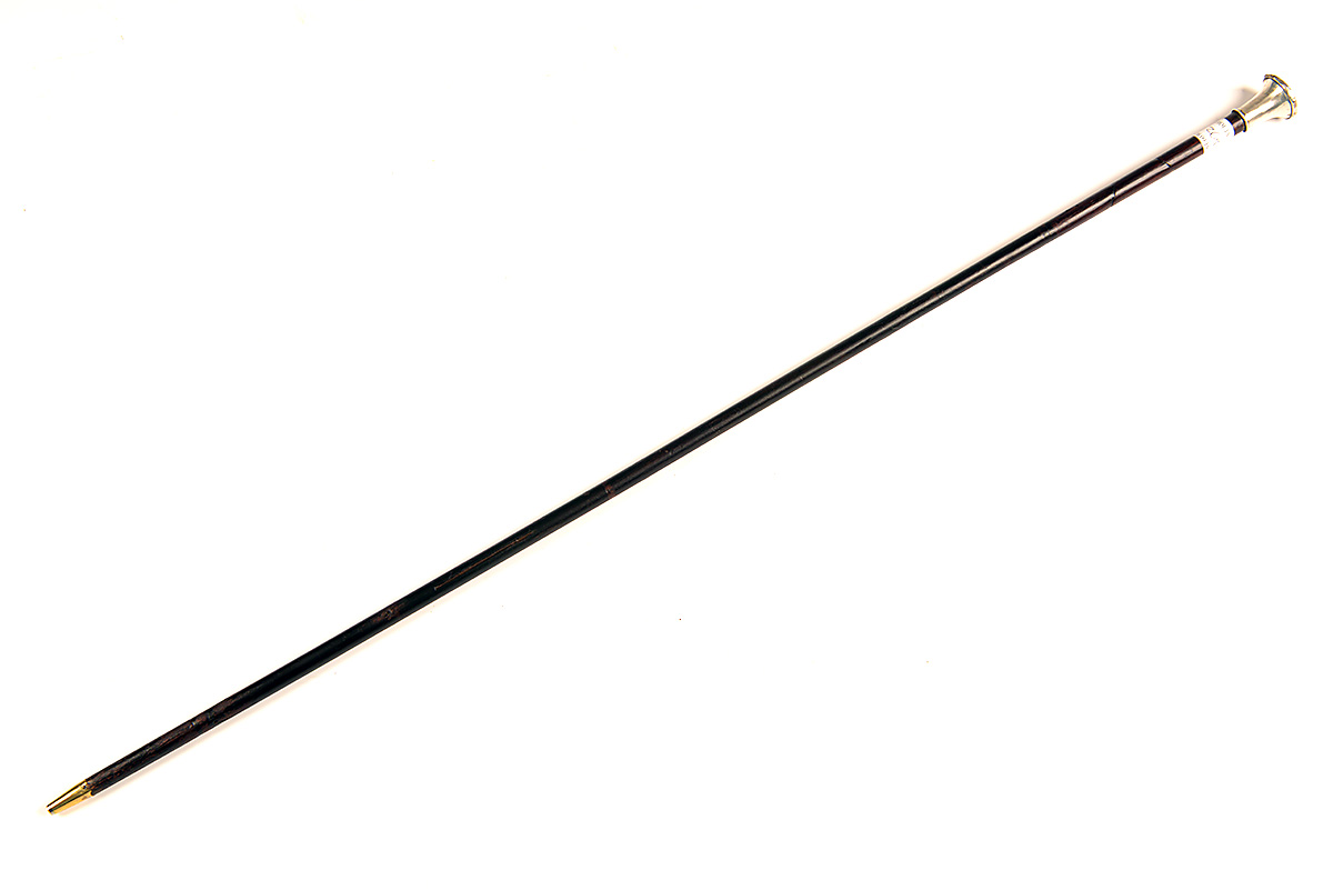 NAPPER & DAVENPORT GENTLEMAN'S WALKING CANE, 33 1/2in. wooden shaft, with stirling silver top circa 1908, enamel top with pheasant cock, brass ferrule