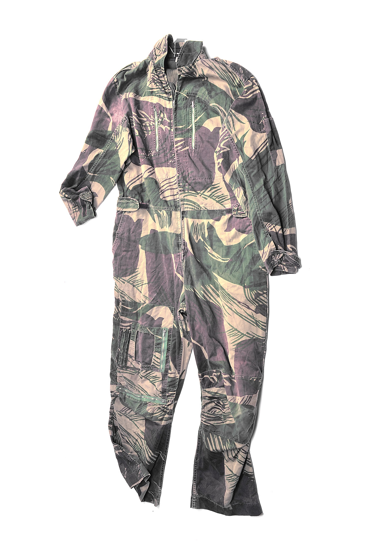 ** A SCARCE RHODESIAN AIRBORNE FORCES CAMOUFLAGE JUMP-SUIT, combat worn with hole to lower left leg and small holes elsewhere, unbadged