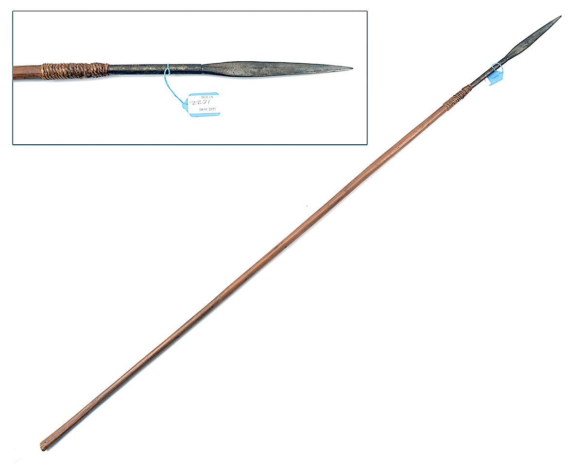 * A ZULU ASSEGAI IKLWA/STABBING SPEAR probably early 20th century, with the shaft bound to the head with rattan, approximately 61in. overall