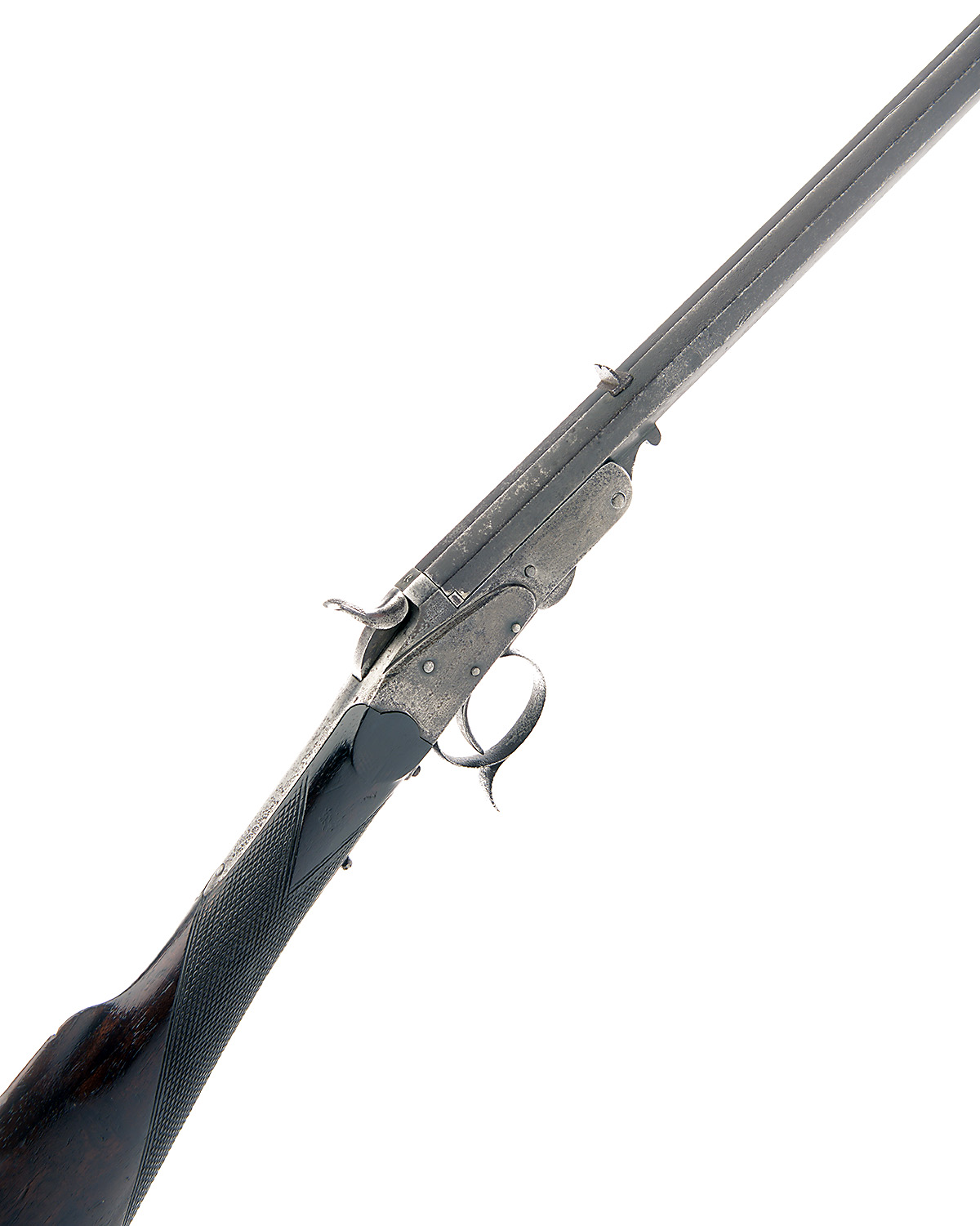 AN F.A.C. BELGIAN .22 (SMOOTH) SINGLE-BARRELLED HAMMER RIFLE, nvsn, 22 1/2in. black powder only octagonal barrel with open rear sight, dove-tailed blade fore-sight, 14in. stock including steel buttplate