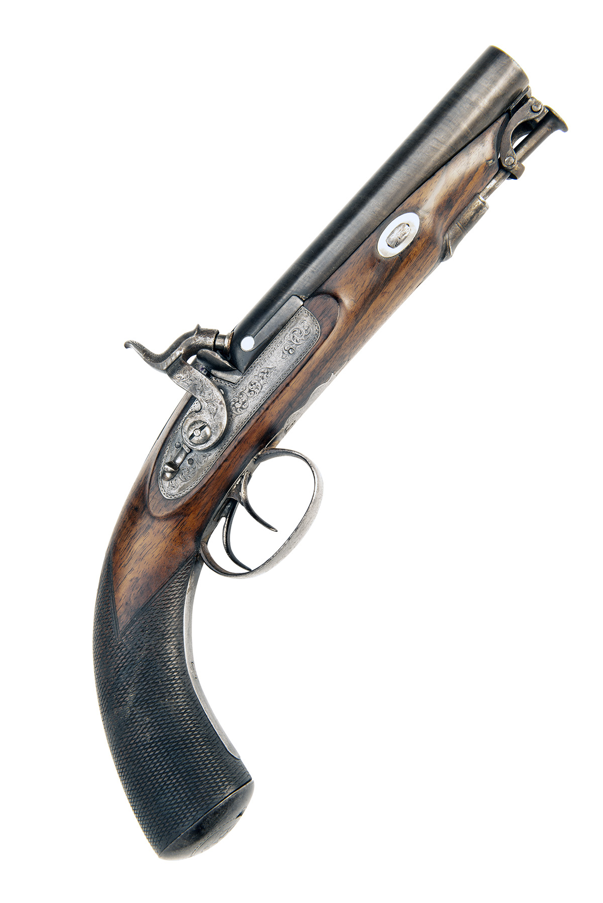 A .600 (REGULATION) PERCUSSION DOUBLE-BARRELLED OFFICER'S OR HOWDAH PISTOL, no visible serial number,