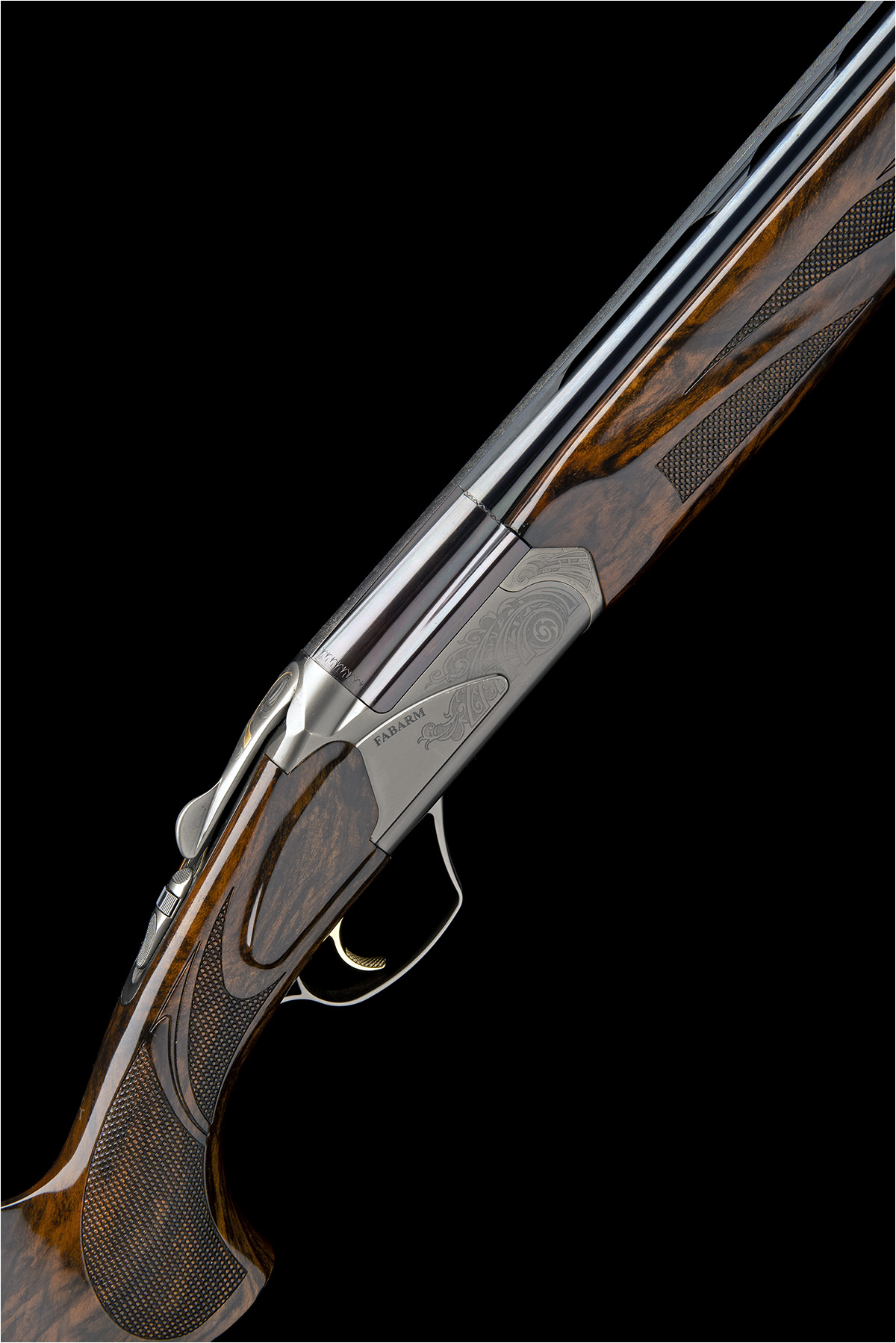 28in. nitro barrels with 6mm ventilated matt top-rib with high visibility bead fore-sight, 3in. chambers, multichokes (with spares), hold-open toplever, manual safety with integral barrel selector switch, gold-washed trigger, stylised scroll engraving, the triggerplate signed 'inc. Bresciani', satin gunmetal finish, 14 5/8in. figured pistolgrip stock including rubber buttpad, weight 6lb. 7oz., in its universal case