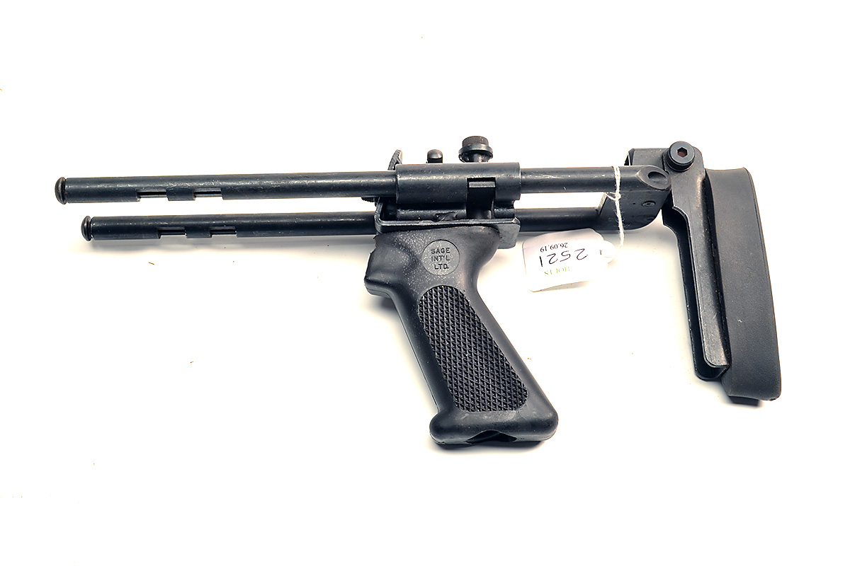 A COLLAPSIBLE BUTT-STOCK FOR A PUMP-ACTION SHOTGUN SIGNED SAGE INT. LTD,