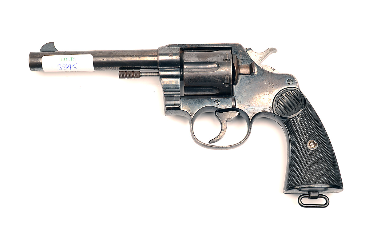 A .455 SIX-SHOT SERVICE REVOLVER SIGNED COLT, MODEL 'NEW SERVICE', serial no. 80071, for 1915, with 5 1/2in. blued barrel, solid frame with swing-out fluted cylinder and chequered hard-rubber grips, much finish remaining