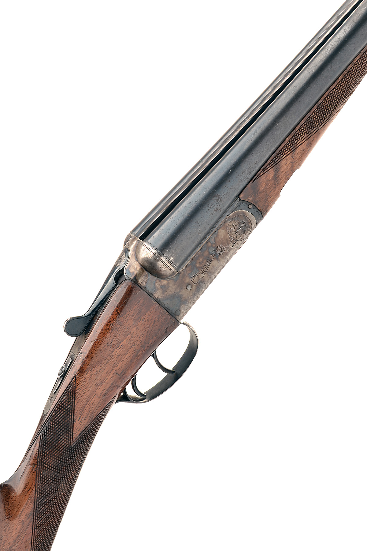 B.C. MIROKU 12-BORE 'MODEL 500E' BOXLOCK EJECTOR, serial no. 198163, 28in. nitro barrels, 2 3/4in. chambers, bored approx. 1/4 and full choke, automatic safety, border engraving, retaining some original colour-hardening and finish, 14 3/4in. stock including buttplate, cracked at hand
