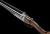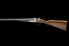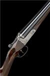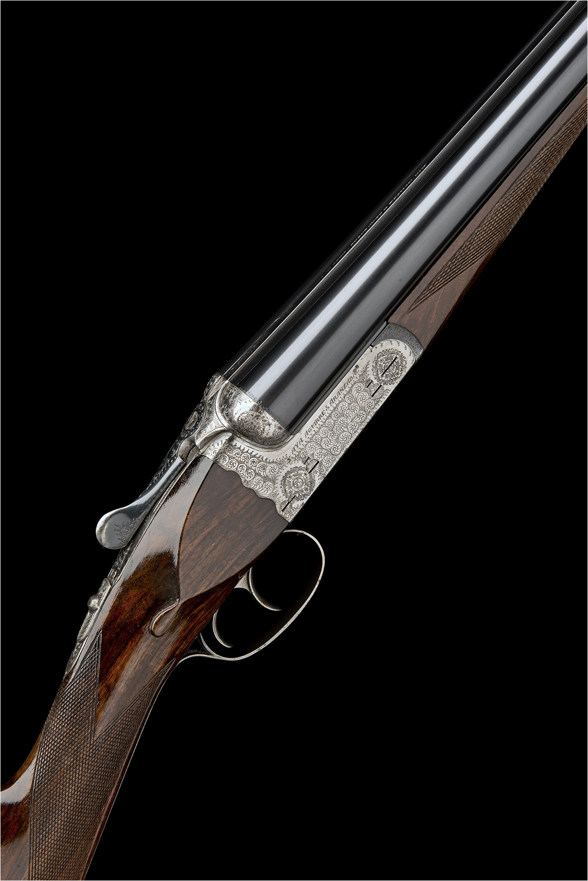 28in. nitro chopperlump barrels, 2 3/4in. chambers, bored approx. true cyl. and 1/2 choke, scroll-back action with removable striker discs, automatic safety, rolled-edge triggerguard, acanthus scroll engraving with floral bouquets, bright finish, 14 5/8in. stock, weight 6lb. 9oz.