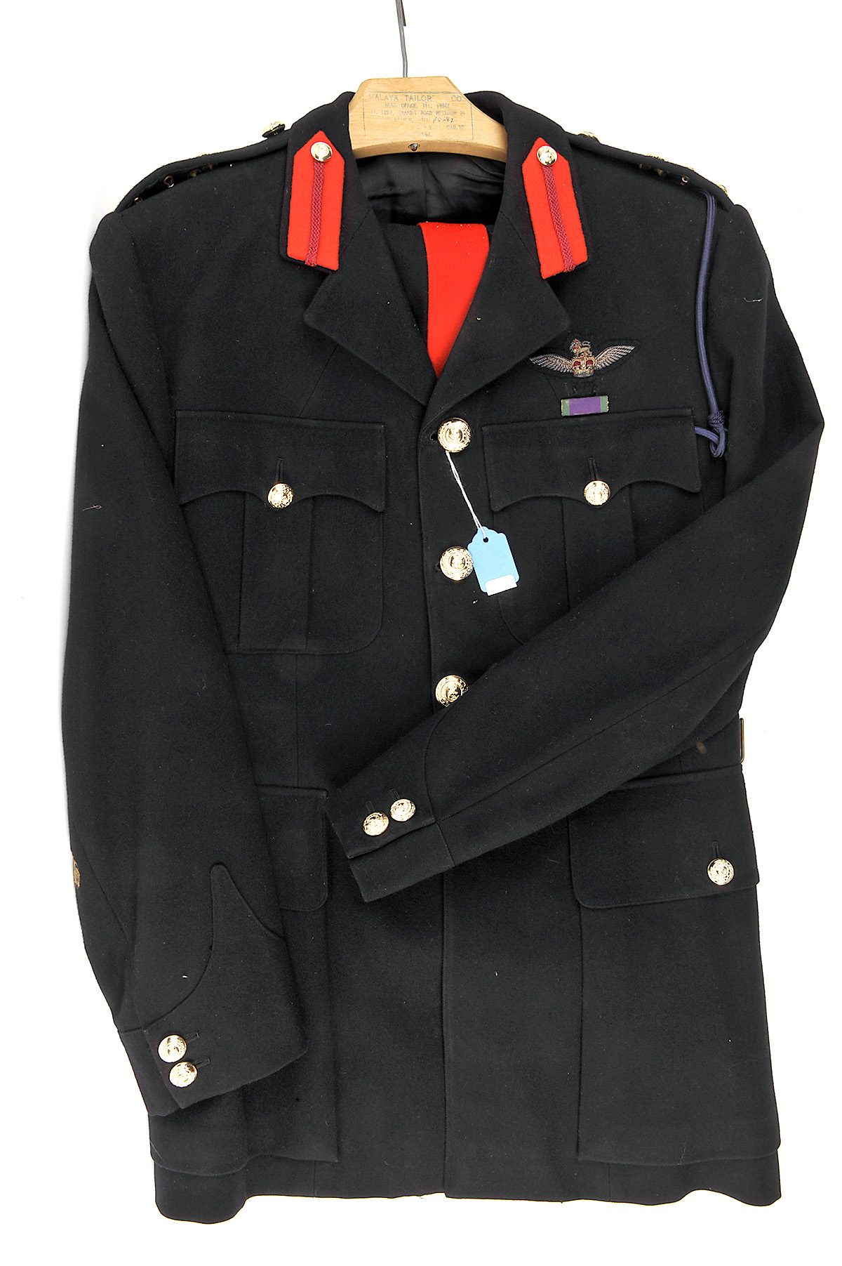 TWO ROYAL MARINE UNIFORMS The first a No1 set in blue, the second a mess set, both comprising of jacket and piped trousers, small size (2)