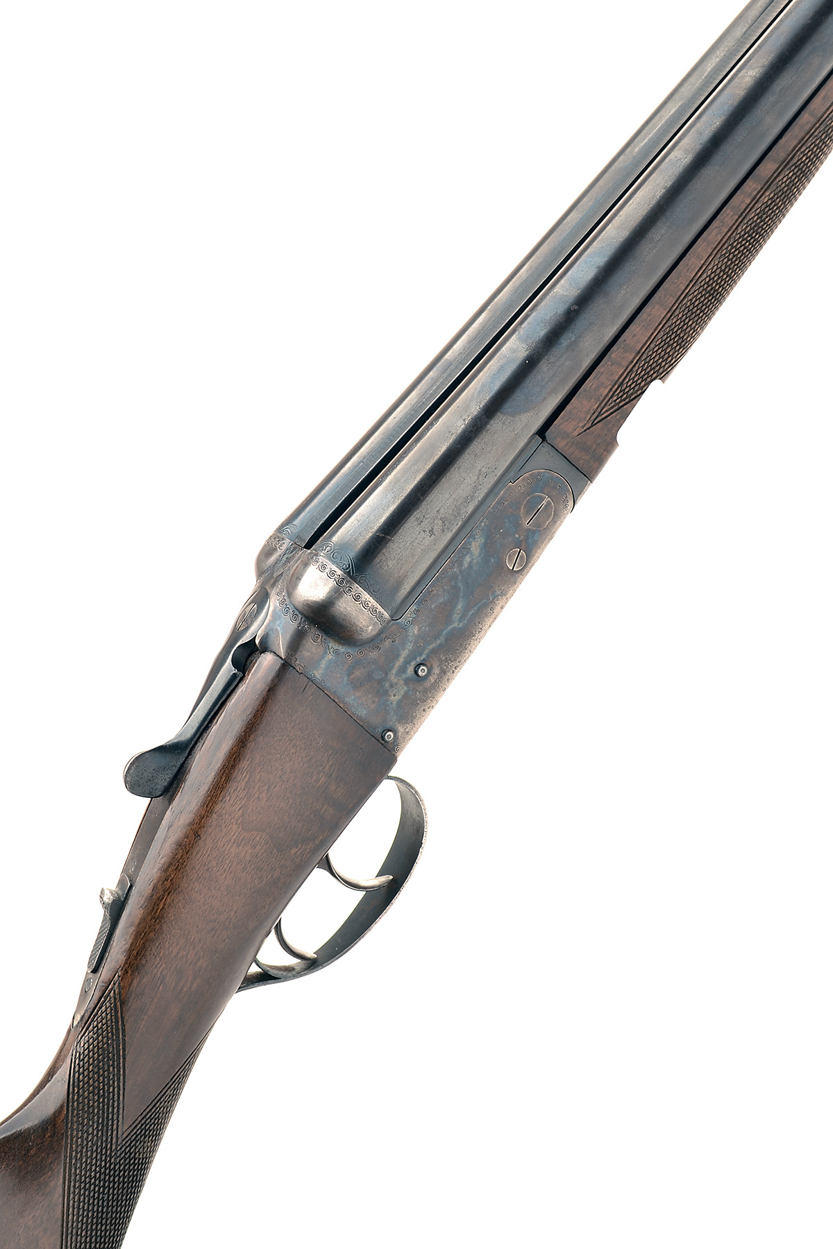 'THE BASQUE' 12-BORE BOXLOCK NON-EJECTOR, serial no. 242553, 26in. nitro barrels, 2 3/4in. chambers, bored approx. imp. cyl. and 1/4 choke, removable striker discs, automatic safety, border engraving, retaining much original colour-hardening and finish, 14n. stock including buttplate
