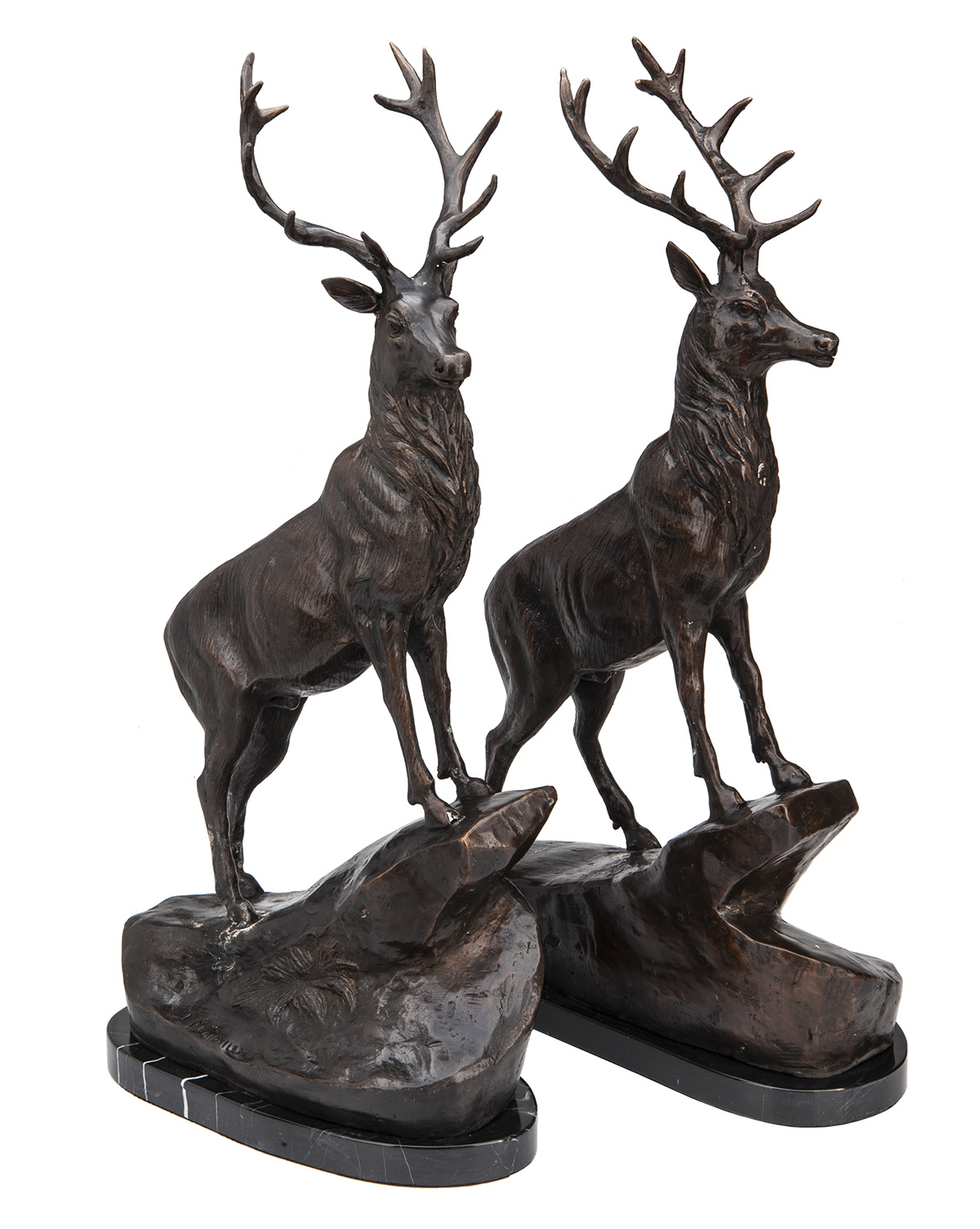 A PAIR OF BRONZE STAGS SIGNED BY T. MAIGNIERY,