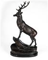 † A PAIR OF BRONZE STAGS SIGNED BY T. MAIGNIERY,
