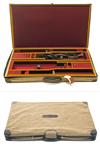 fitted for 33in. over and under barrels, the interior lined with maroon baize, brass lock (including key), canvas outer
