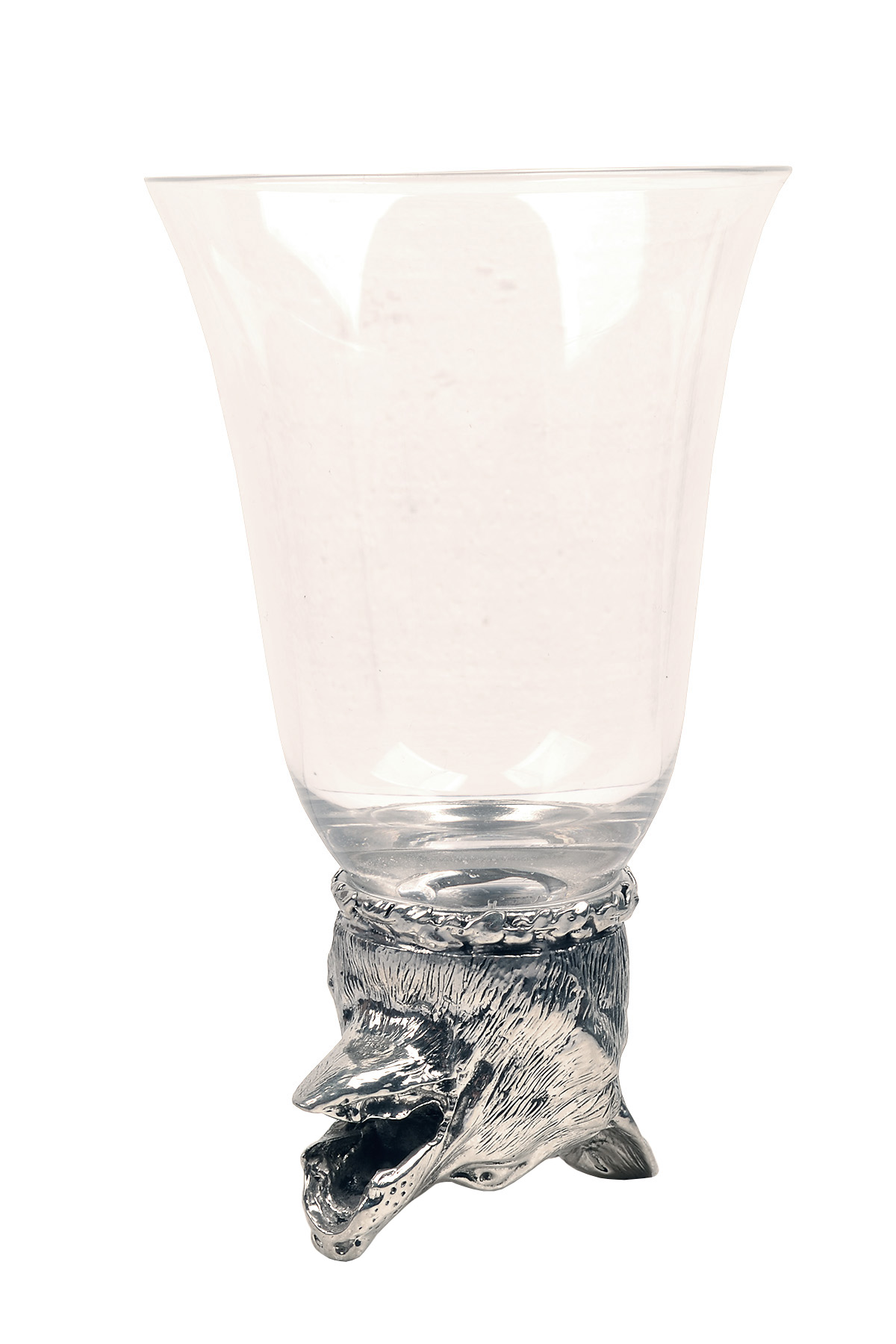 † A NEW AND UNUSED WUTSCHKA WOLF HEAD GLASS, silver wolf head bottom, with glass approx 200ml