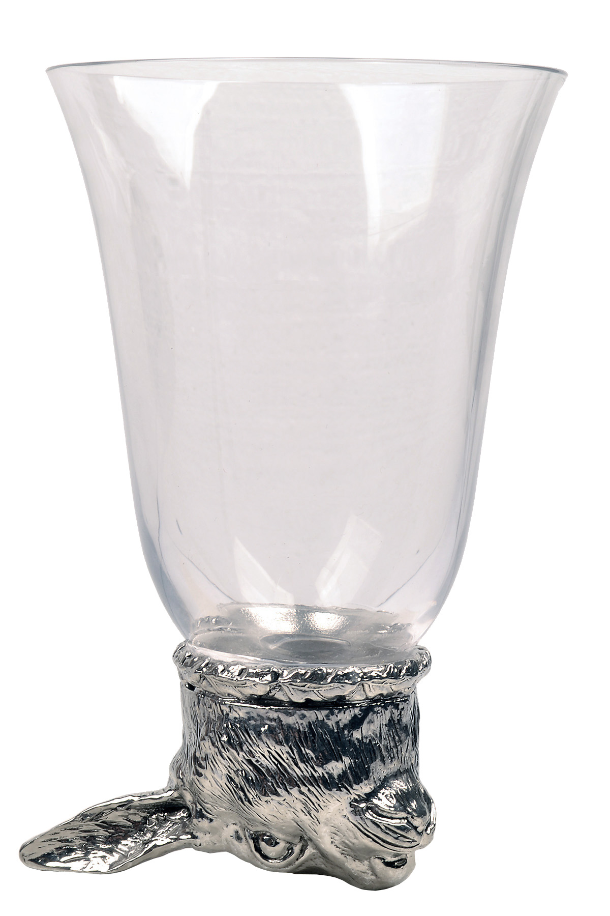† A NEW AND UNUSED WUTSCHKA HARE HEAD GLASS, silver hare head bottom, with glass approx 200ml