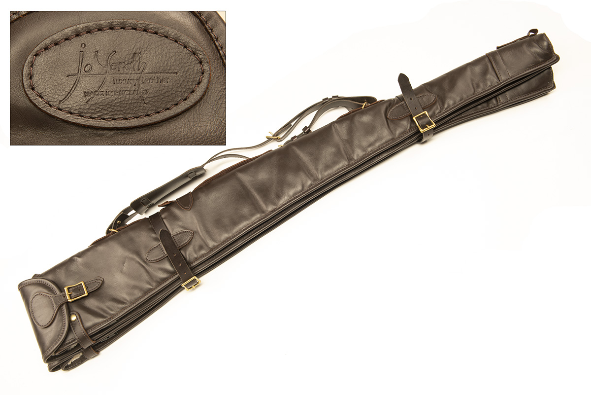 JOANNE YORATH A NEW AND UNUSED DARK LEATHER SHEEPSKIN-LINED DOUBLE GUNSLIP,