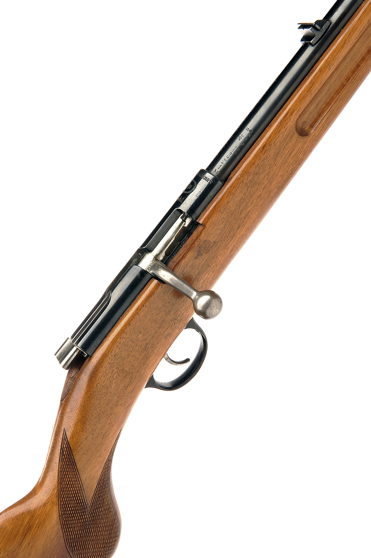SUHLER WAFFEN .22 HORNET BOLT-ACTION SINGLE-SHOT SPORTING RIFLE, serial no. 208619, 24in. nitro barrel, bead fore-sight, leaf rear-sight, with 1 x folding, manual flag safety, 14 1/4in. semi-pistolgrip stock, sling swivels