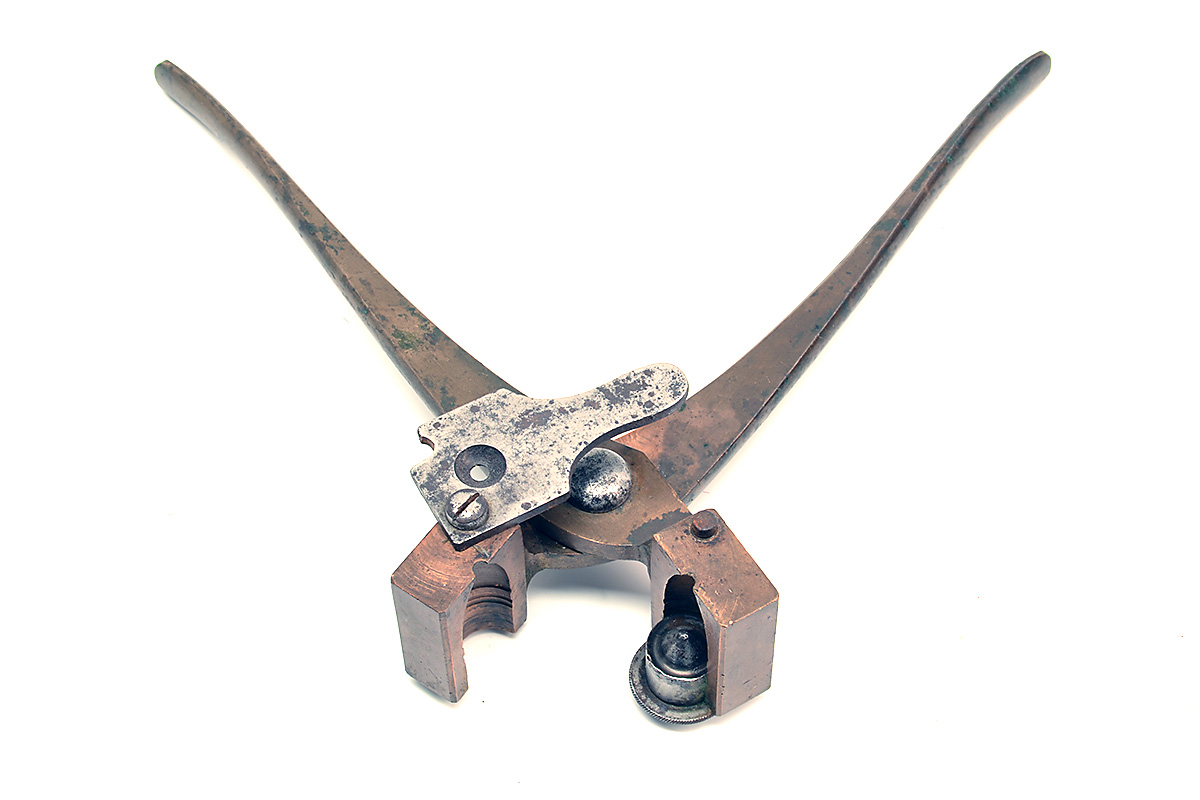 A .650 BRASS MOULD FOR A HOLLOW-BASE BULLET, circa 1855, steel base-plug and cutter