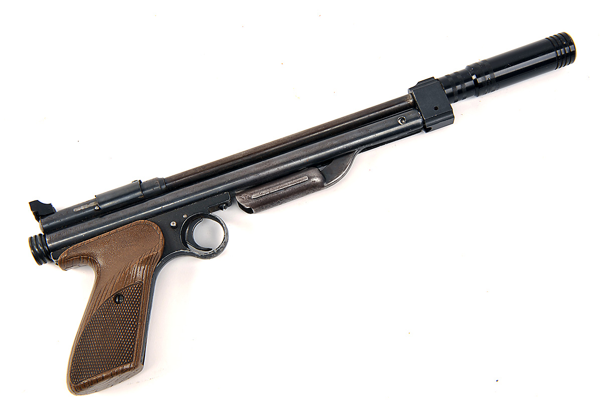 A .22 MULTI-PUMP PNEUMATIC AIR-PISTOL SIGNED HAWTHORNE, MODEL M130, no visible serial number,