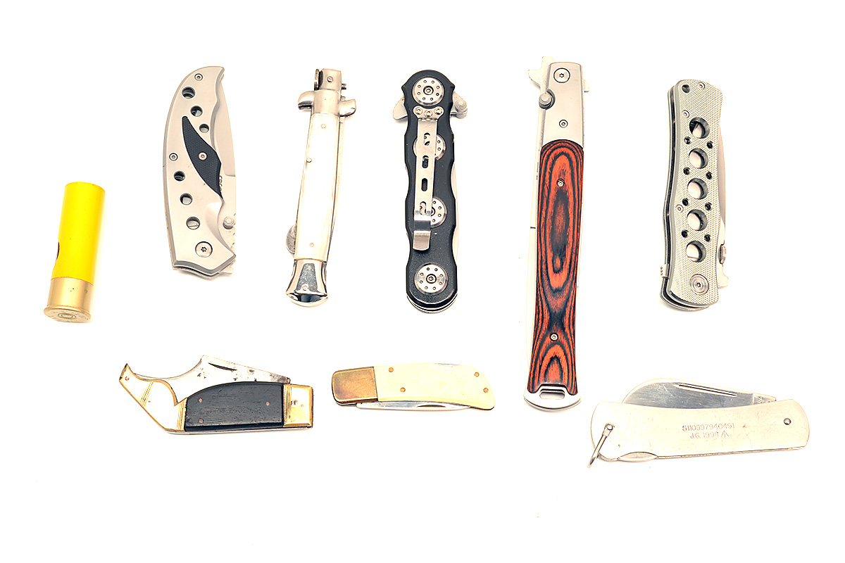 NINE ASSORTED FOLDING KNIVES, most with locking blades, the largest 13in. open (9)