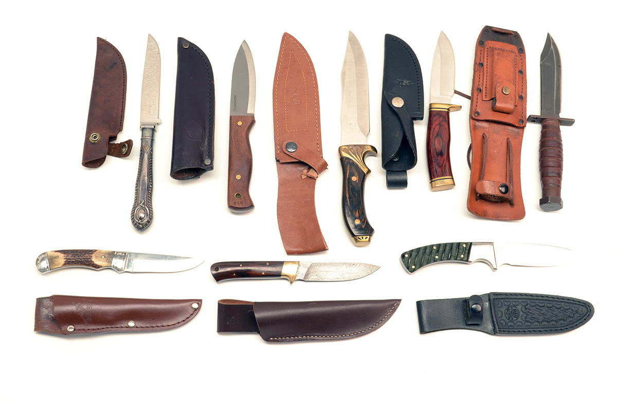 EIGHT ASSORTED SHEATH-KNIVES most appearing little used, all with leather scabbards (8)