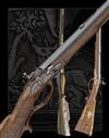 A 30-BORE FLINTLOCK SINGLE-BARRELLED SPORTING RIFLE , no visible serial number,