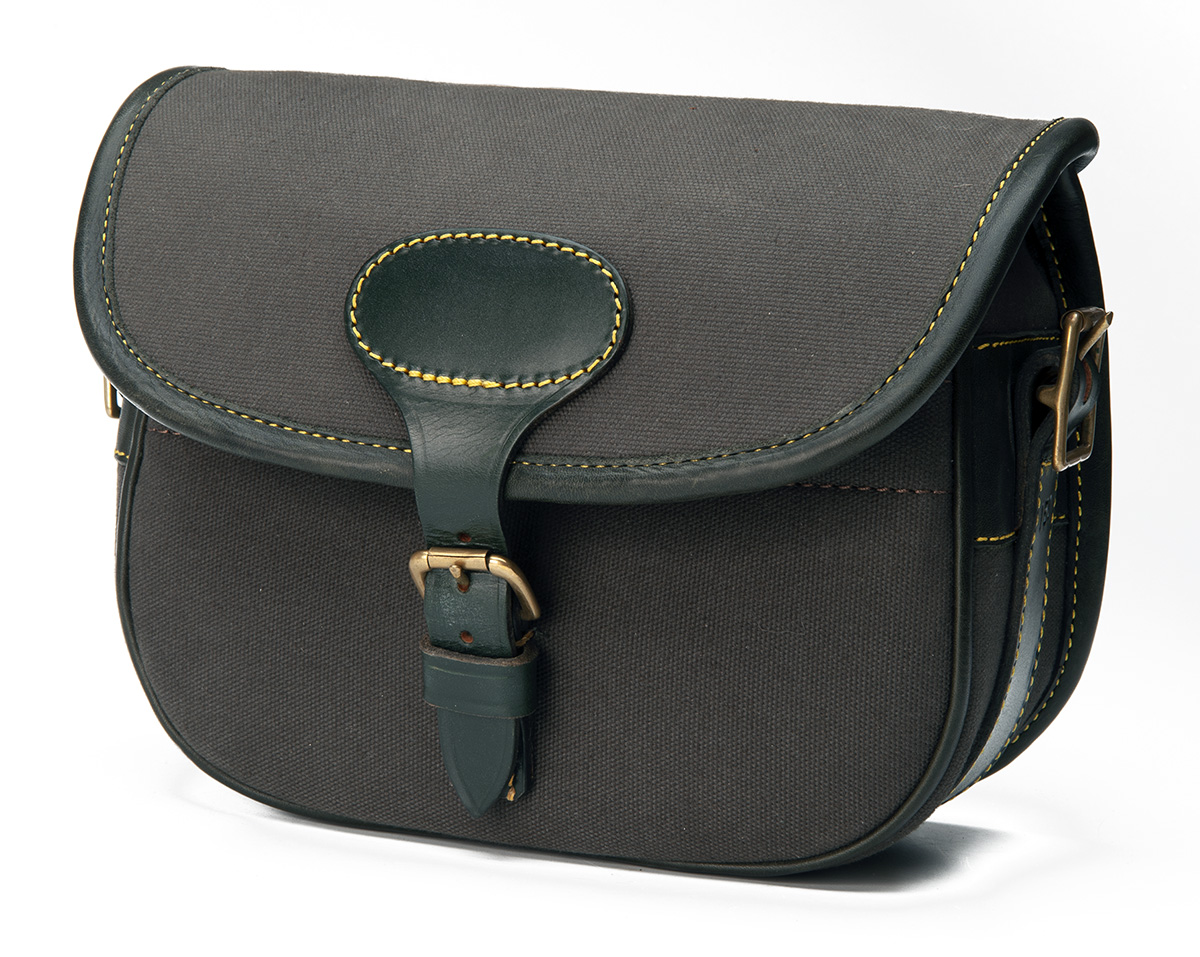 FREDERICK BEESLEY A NEW AND UNUSED GREEN CANVAS AND LEATHER CARTRIDGE BAG,