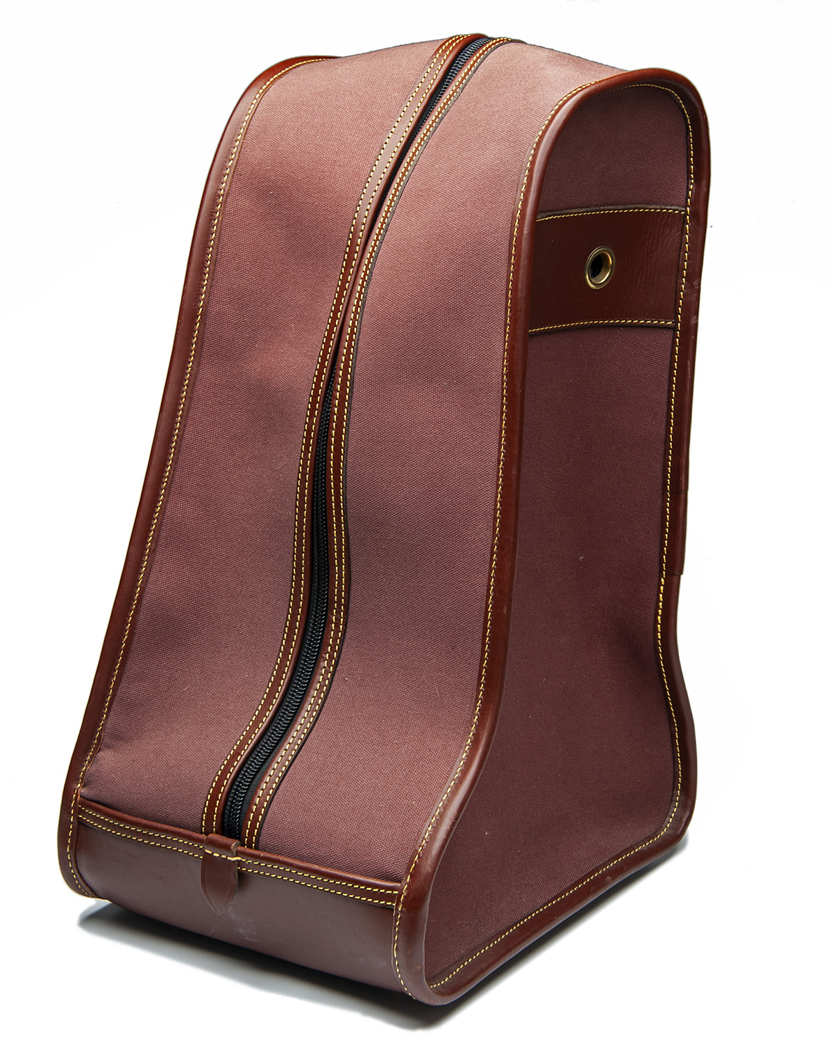 A NEW AND UNUSED CANVAS AND LEATHER BOOT-BAG,