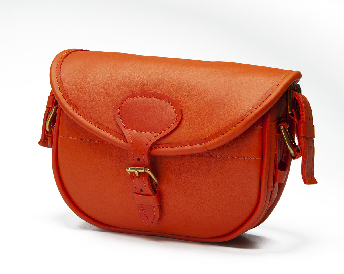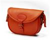 AN UNUSED ORANGE LEATHER SUEDE-LINED MEDIUM CARTRIDGE BAG,