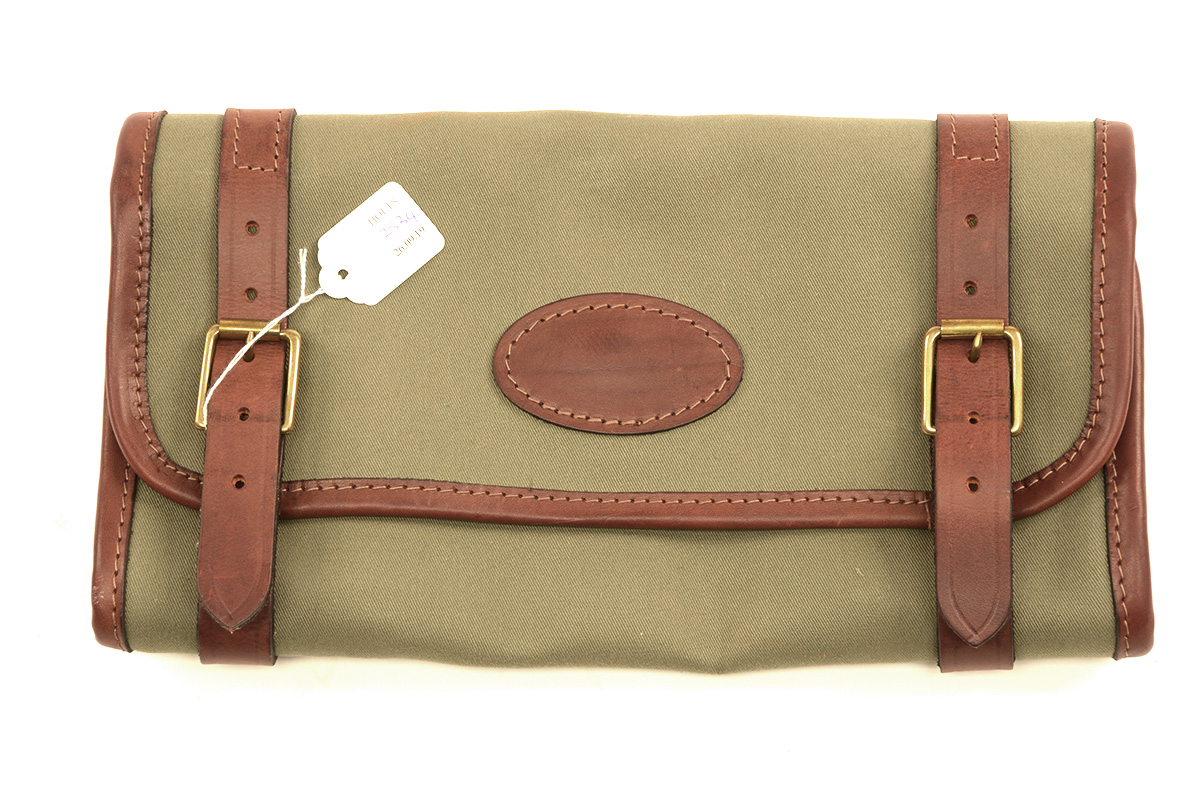 AN UNUSED CANVAS AND LEATHER GUN-CLEANING ROLLING MATT,
