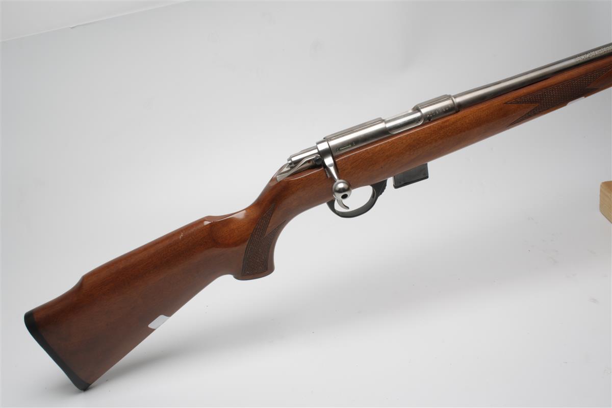 STIRLING .17 HMR 'MODEL 1700' BOLT-MAGAZINE SPORTING RIFLE, serial no. A1028947, 21 1/8in. unsighted stainless nitro barrel, threaded for sound moderator, manual safety, stainless action, detachable magazine, 13 7/8in. pistolgrip stock (including recoil pad) with cheekpiece