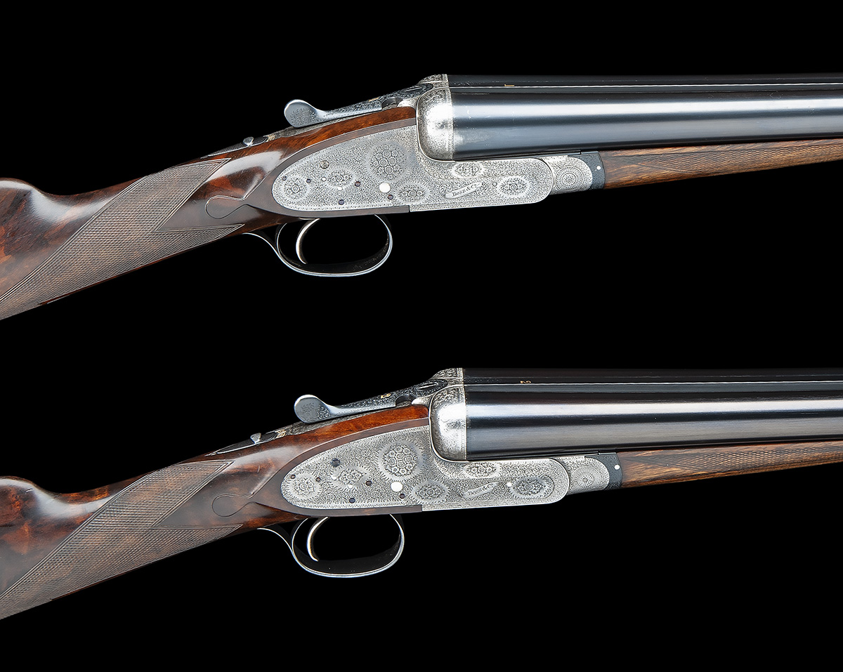 Provenance: The makers have kindly confirmed that the guns were ordered on 28th September 1920 for an E. Thornton. They are recorded as being a pair of hammerless ejector guns, one trigger, 12-bore, 29in. barrels with 15in. stocks