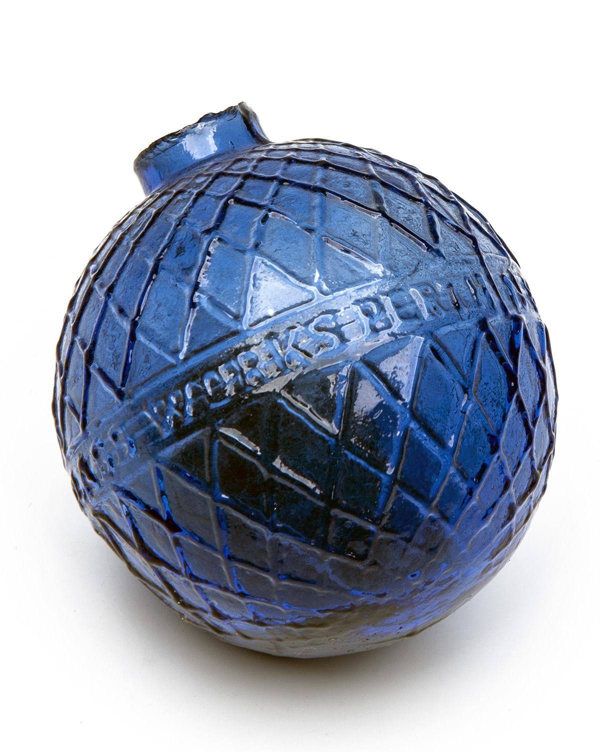 A BLUE 'BOGARDUS TYPE' GLASS BALL TARGET,