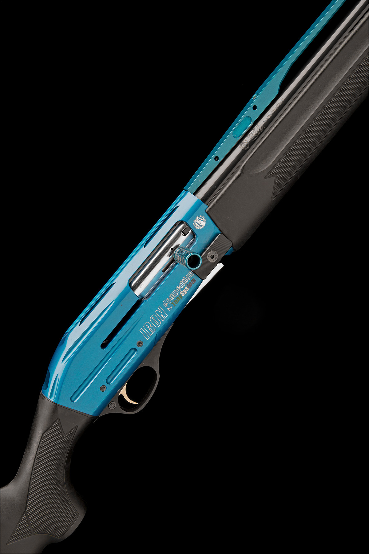 extended 12-shot tubular magazine, 30in. superior proofed nitro barrel with Toni system V4 compensator and patented Toni system barrel bridge pointing system, milled receiver signed 'IRON COMPETITION BY TONY SYSTEM', enlarged cartridge insertion port, oversized charger handle, oversized bolt-release button, gold-washed trigger, manual push-button safety, 14in. polymer pistolgrip stock including ventilated rubber recoil pad, polymer fore-end, the whole in matt black and anodised blue finish, weight 7lb. 11oz.