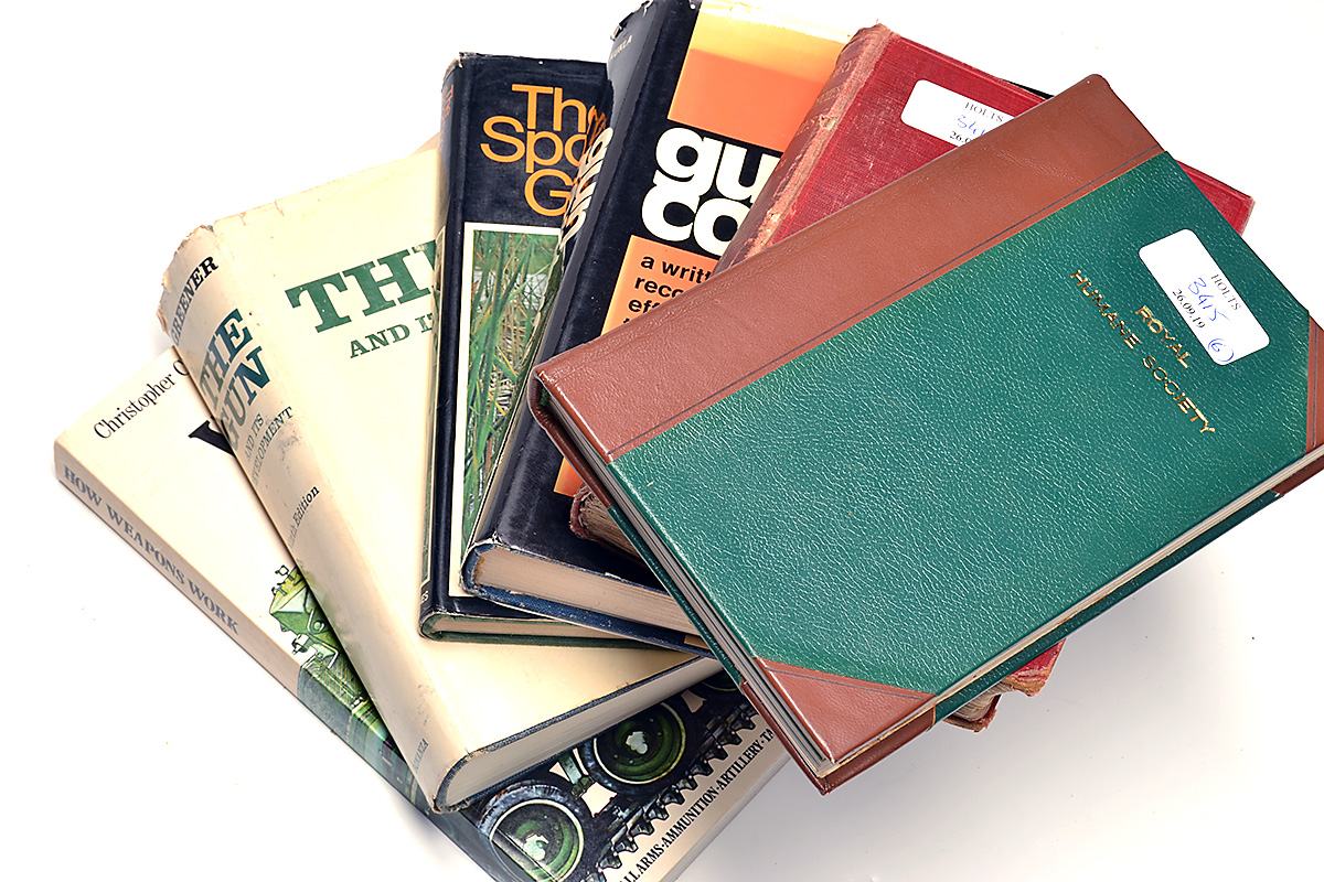 A COLLECTION OF SIX SHOOTING RELATED BOOKS, comprising of 'HOW WEAPONS WORK' by Christopher Chant, 'THE GUN AND ITS DEVELOPMENT (NINTH EDITION)' by W.W. Greener, 'THE SPORTING GUN' by David Carl Forbes, 'GUN CONTROL' by Robert J. Kukla, 'DICTIONARY OF NICKNAMES AND SURNAMES' by Latham, 'A SHORT HISTORY OF THE ROYAL HUMANE SOCIETY' by P.J. Bishop