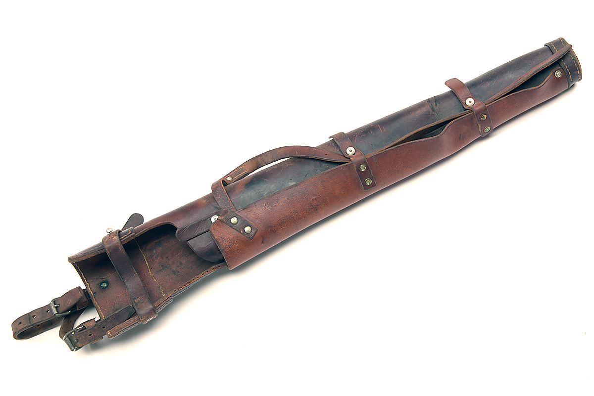 A VINTAGE SWISS MILITARY LEATHER RIFLE SCABBARD,