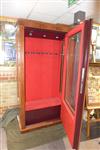 an eight gun safe with an oak finish, the interior lined with red baize, toughened glass, measuring approx. 70in. x 38in. x 19in., PLEASE NOTE AMMUNITION COMPARTMENT IS LOCK AND THE KEY IS MISSING