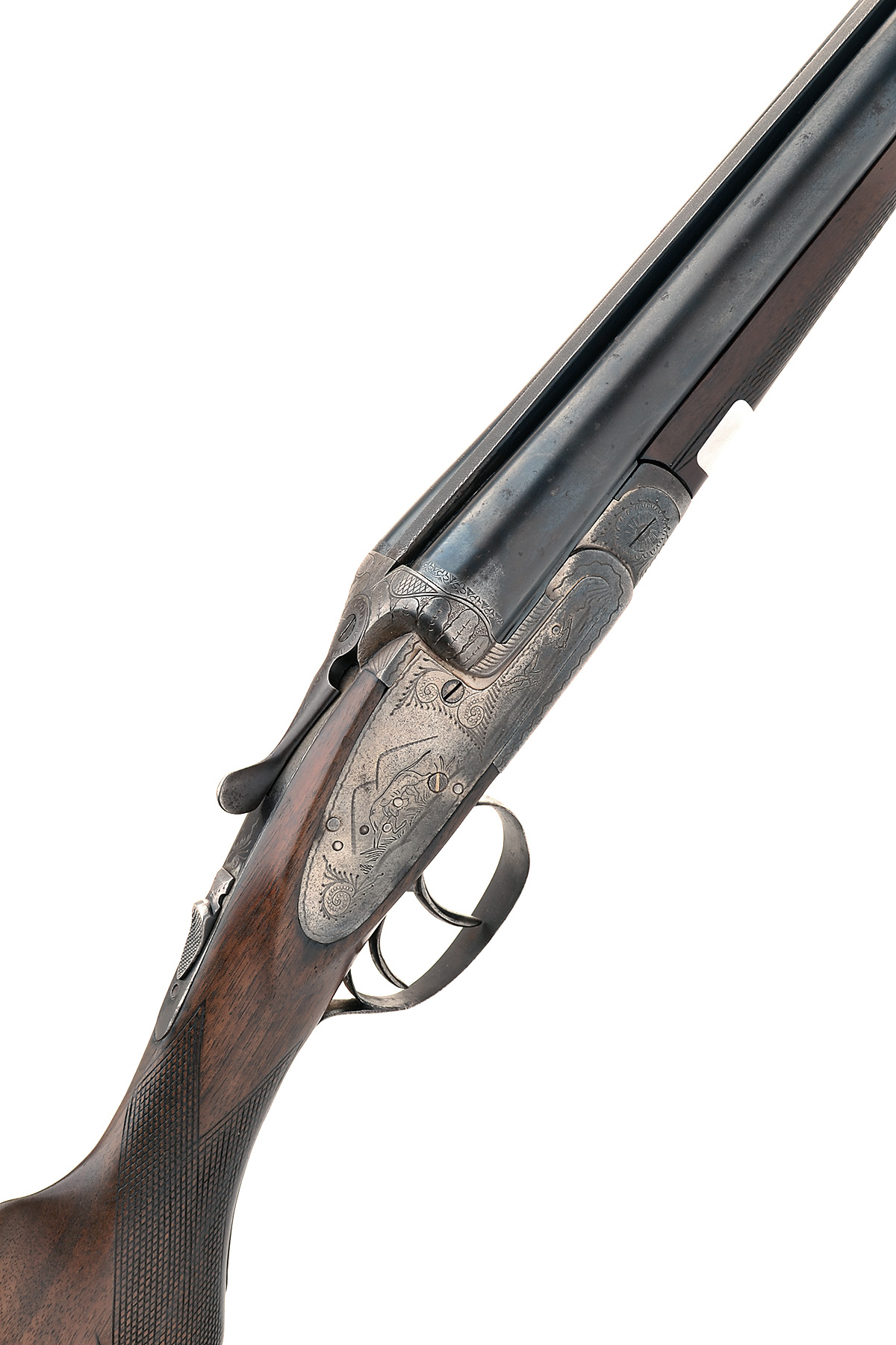 EUSEBIO ARIZAGA 12-BORE SIDELOCK NON-EJECTOR, serial no. 54046, 27 1/2in. nitro barrels, 2 3/4in. chambers, bored approx. 1/2 and full choke, some rusting, wall thicknesses at 17, bolstered side-clipped treble-grip action, toplever spring weak, automatic safety, game and scroll engraving, 14 3/8in. semi-pistolgrip stock, fore-end wood with shrinkage