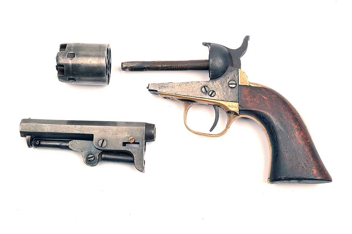 A .31 PERCUSSION REVOLVER FOR RESTORATION SIGNED COLT, MODEL 1849 POCKET, serial no. 273934,
