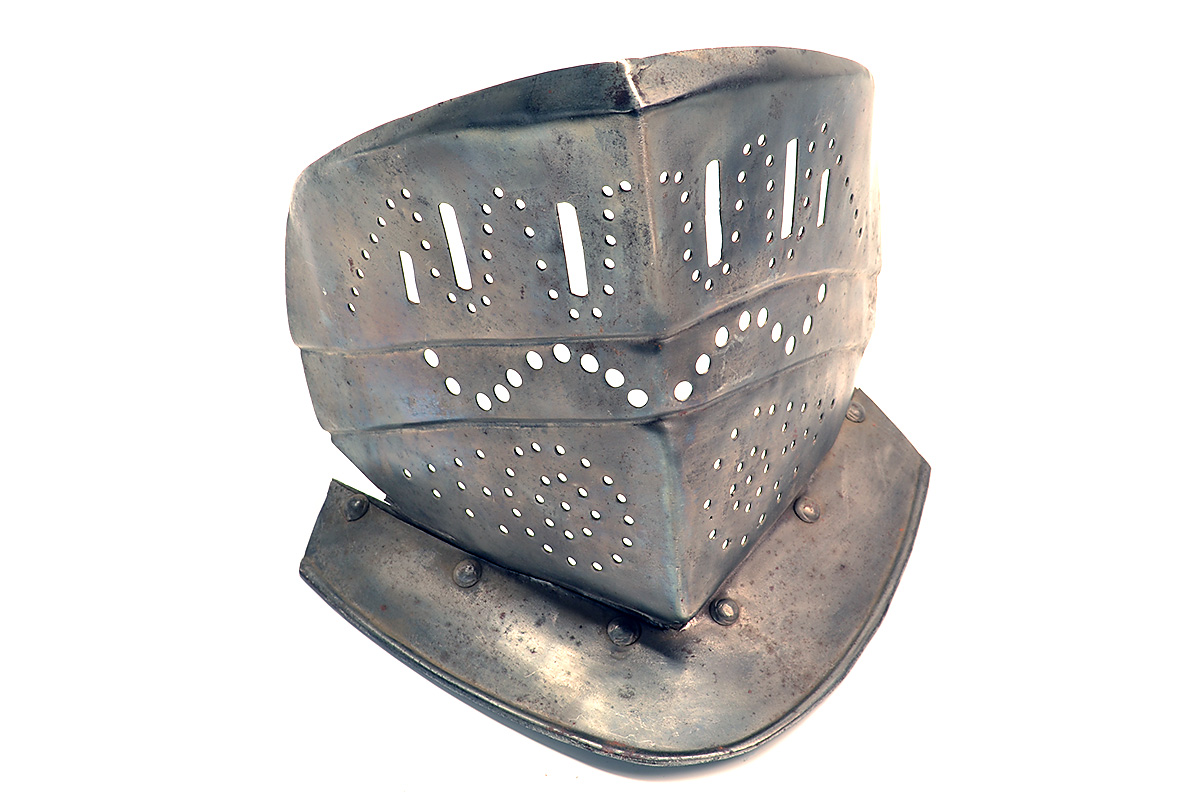 A REPRODUCTION VISOR PLATE FROM A MEDIEVAL STYLE HELMET