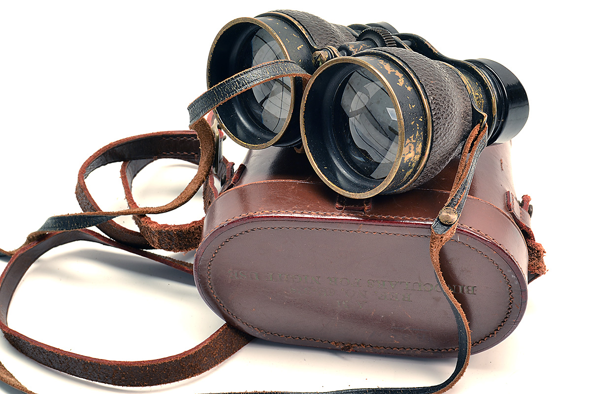 A RARE PAIR OF BRITISH AIR-MINISTRY 2 1/2-POWER LOW-LIGHT BINOCULARS, in their case of issue