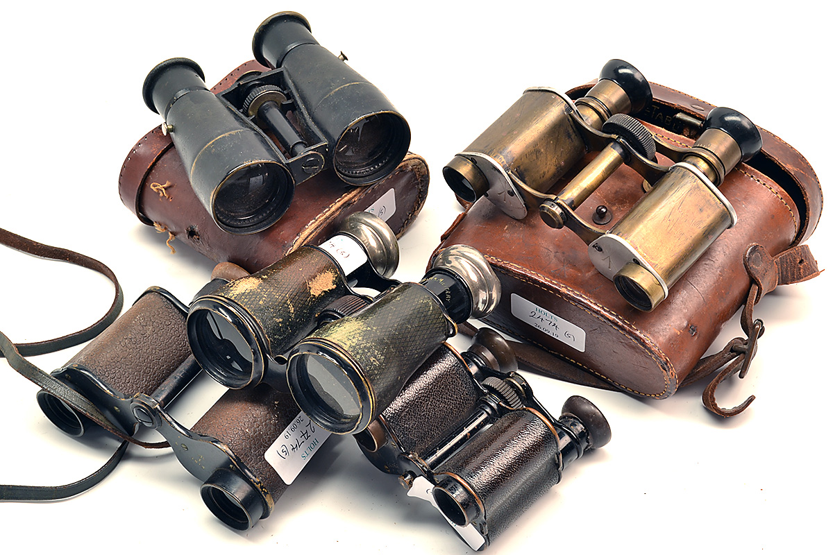 A COLLECTION OF FIVE WORLD WAR ONE AND EARLIER BINOCULARS, (5)