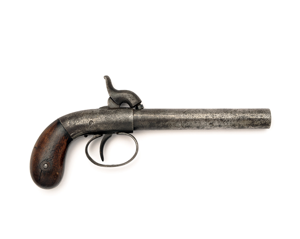 A 100-BORE PERCUSSION POCKET-PISTOL, UNSIGNED, serial no. 229,